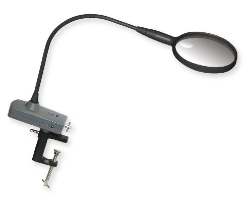 The CL-65 MagniFlex from Carson Optical is a lighted, fully-adjustable, flexible arm Hands Free Magnifier that attaches to your table-top for convenient Hands Free use. Its large 2x power lens gives you a sharp, distortion-free view, and 4x power spot lens allows you to see even the finest details with ease. Three super bright LED lights allow for use in low-light conditions. This Magnifier operates on 3-AAA batteries (not included) or supplied 4.5v DC adapter.