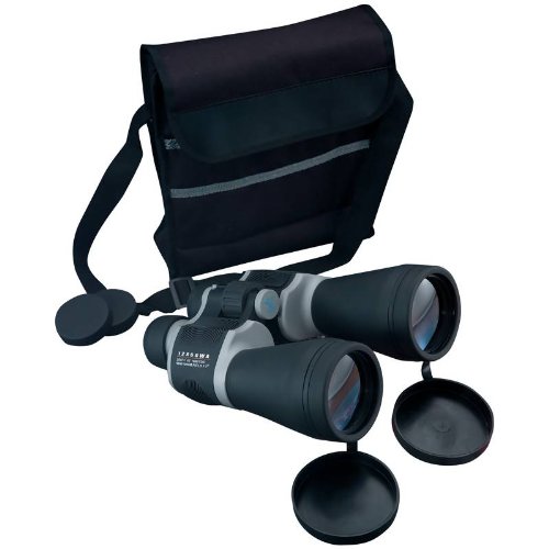 Super Power isn?t just something found in politics!  We?ve got it right here in these Magnacraft 12 x 60 bird watching binoculars.  These are the ultimate long distance viewing accessories, with the extraordinary ability to bring things to you, that wouldn?t be possible with binoculars of lesser power or quality.  The 7 inch barrels extend to 8 ½ inches with the soft rubber eye cups, but have grooved inserts to ensure a firm grip, no matter who is using them.  Other features include a center focusing wheel, neck strap, and attached lens covers.  The soft-sided case also comes with an adjustable shoulder strap to make it easy to carry on a hike or nature walk.  10 year warranty.  Gift boxed.